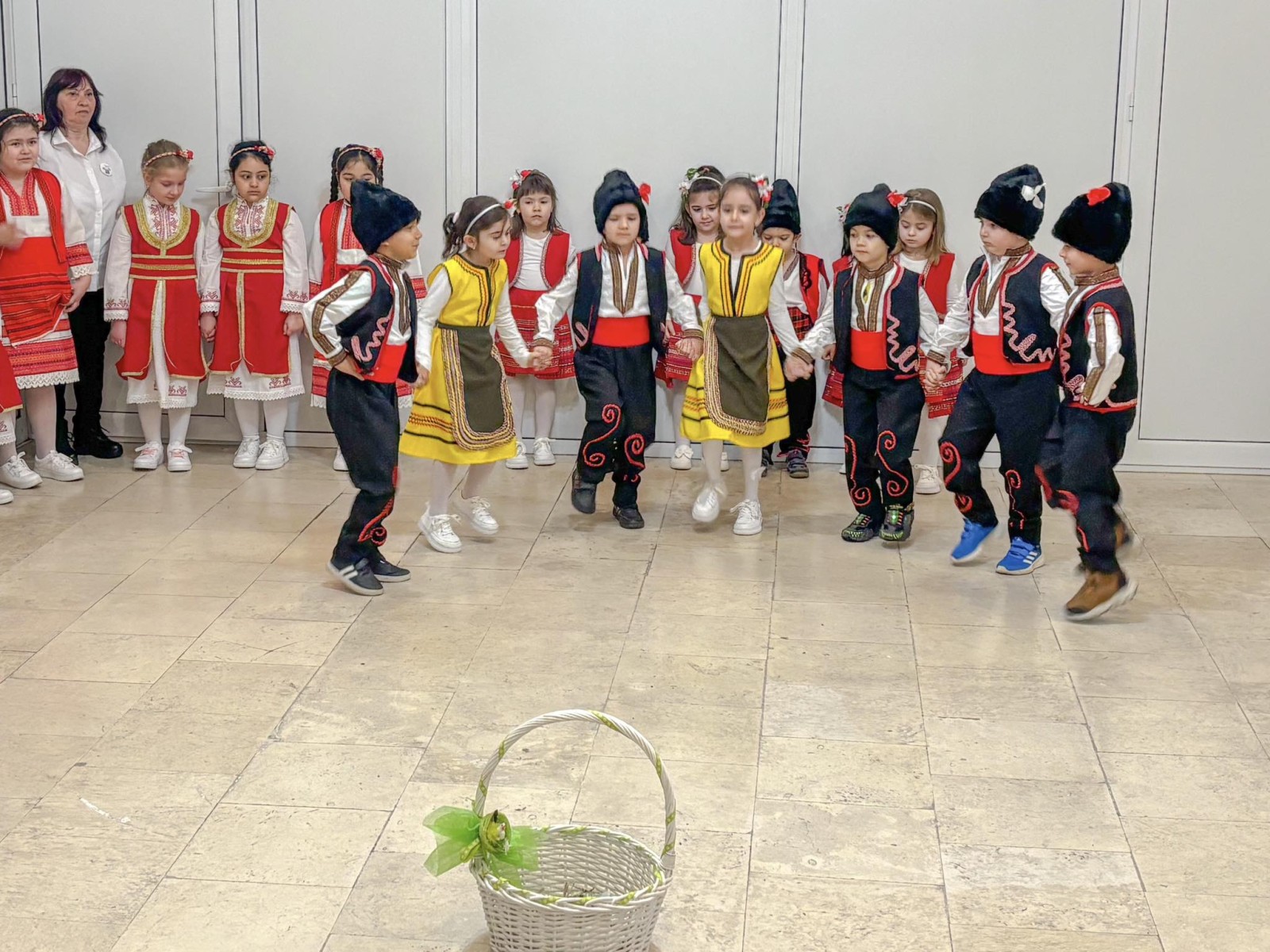 С децата от ДГ " Славейче" , облечени в традиционни български костюми пресъздадохме стария обичай и нарекохме за здраве, плодородие и благоденствие.