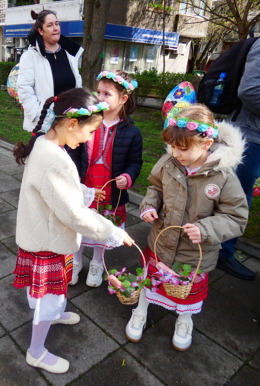 Красиви лазарки и момци от Детска градина №1 „Снежанка“ изпълниха ритуала лазаруване във великденския кът на ул. „Дунавска“. Със стихчета и песнички „снежанките“ показаха красотата на един от най-обичаните пролетни празници. Децата бяха наградени с великденски лакомства от заместник-кмета на Община Лом инж. Хилда Владимирова.