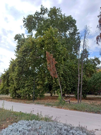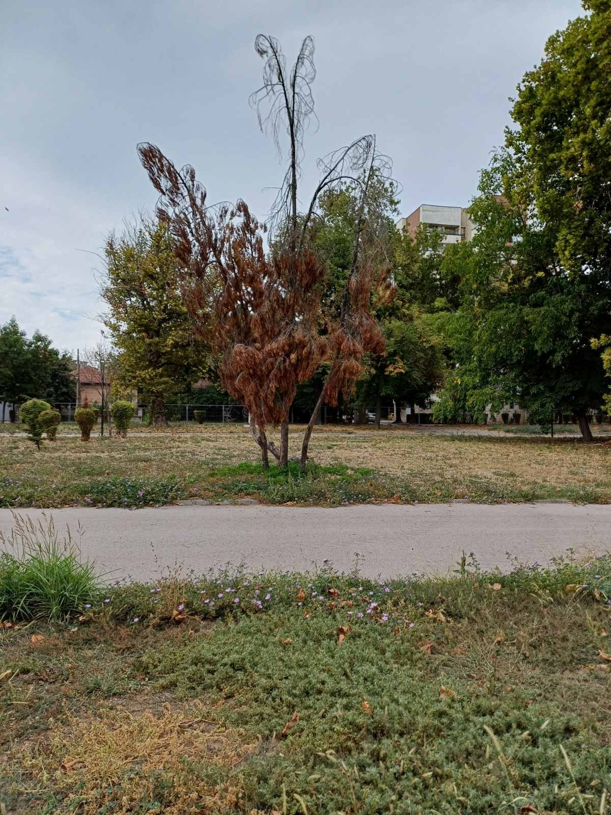 В галерията със снимки вижте зоните за залесяване и какво бе състоянието на премахнатите дървета в Крайдунавския парк: