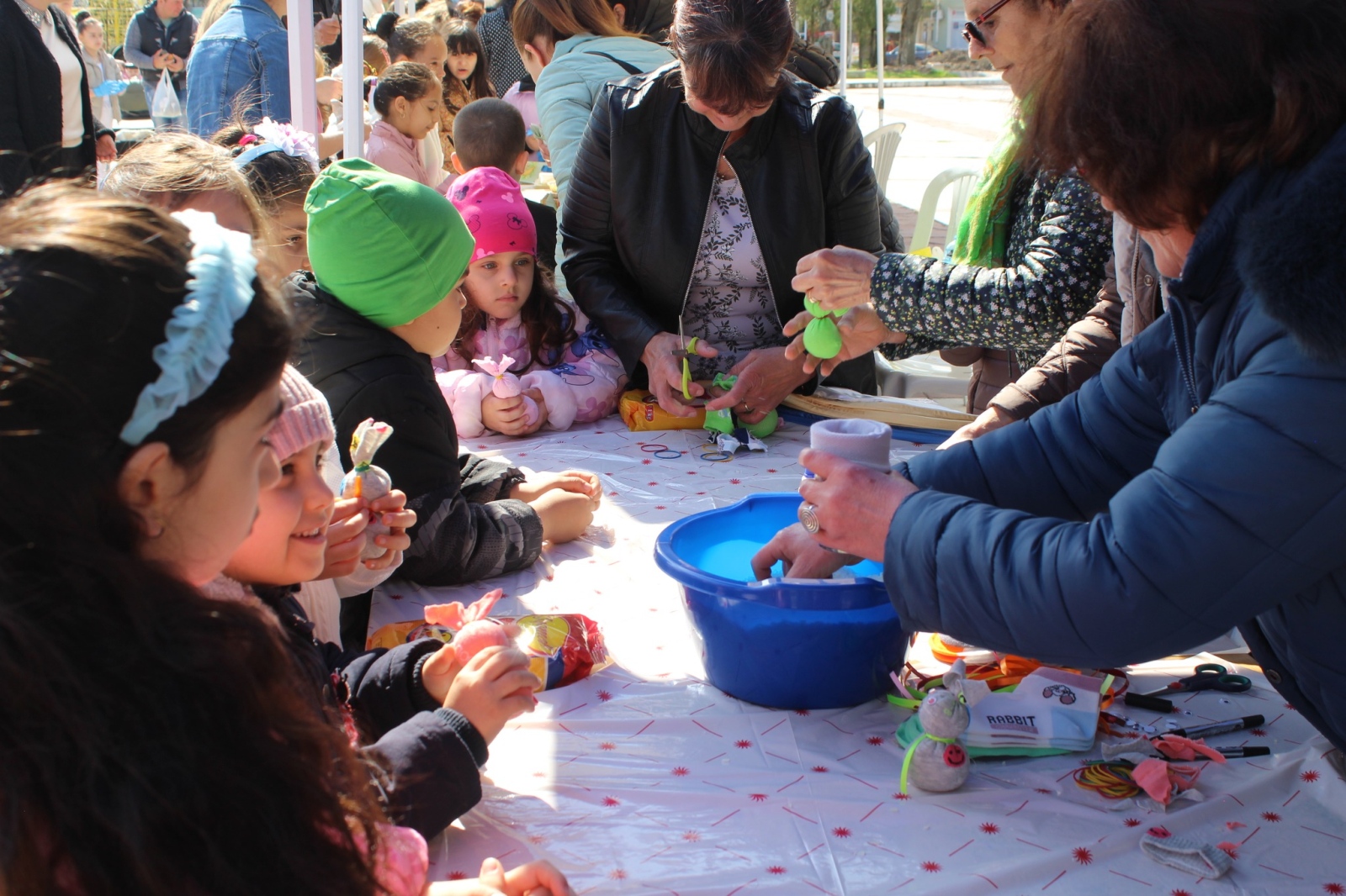 Организаторите от Община Бяла Слатина и НЧ „Развитие-1892“ бяха подготвили тематични шатри – „Пъстри яйца като на баба“, „Яйца-бижута“, „Зайо-Салфетко“ и „Пухкави ушички от чорапче“. В тях децата показаха въображение и сръчност, създавайки красиви великденски творения.