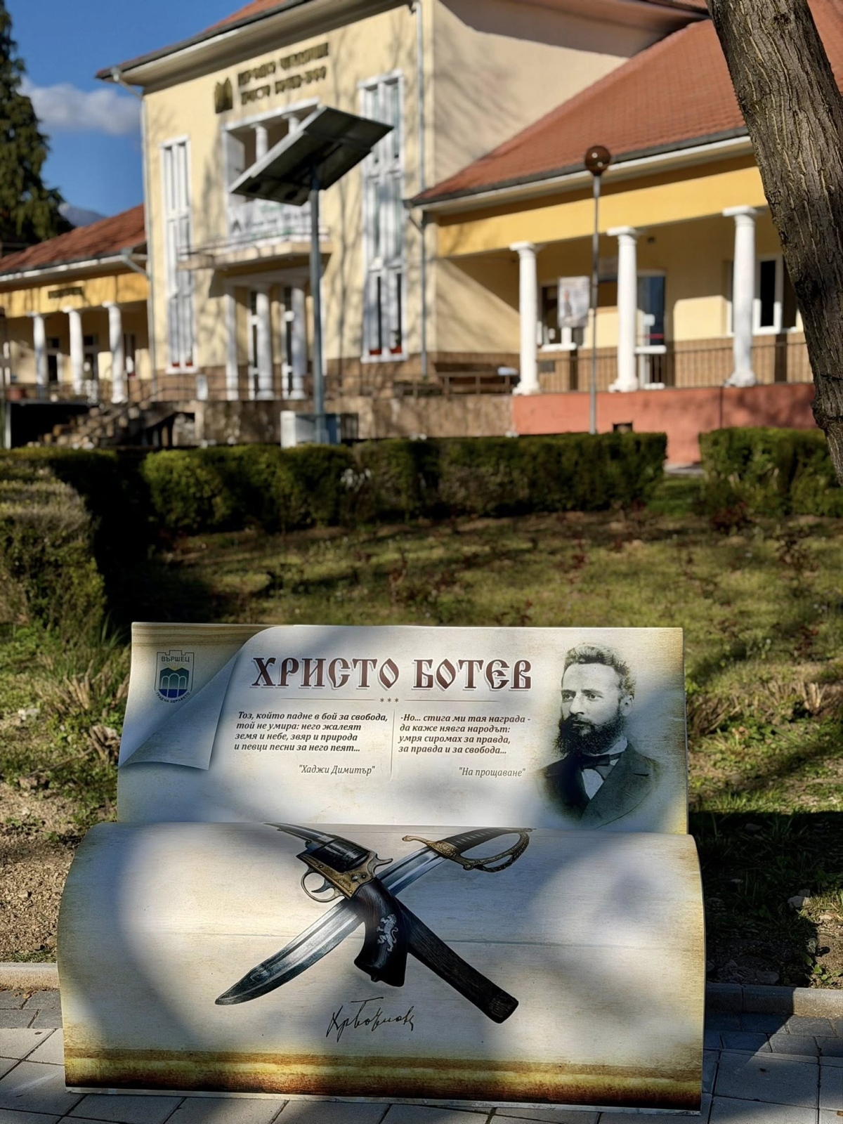 Другата пейка, също във формата на книга, е посветена на Христо Ботев – с негови вечни и любими думи, които носят духа на свободата.
