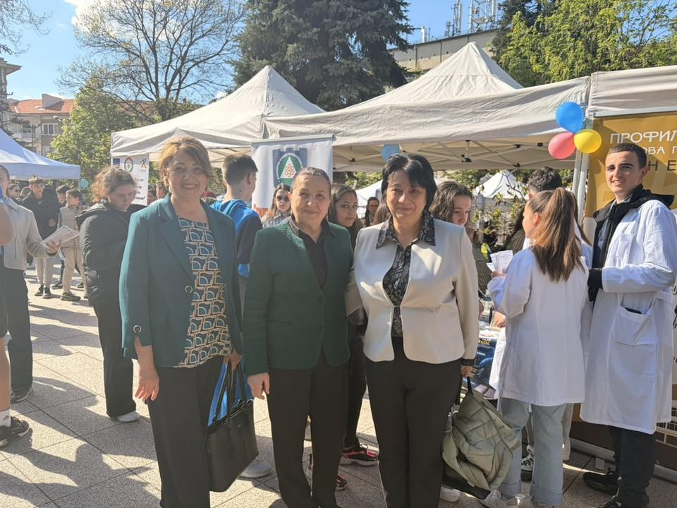 [✔️] Заместник-кметът Петя Долапчиева посети шатрите на участниците във форума и приветства представителите на образователните институции и участниците в събитието. На форума присъства и Лорета Колева, началник на Регионалното управление на образованието.