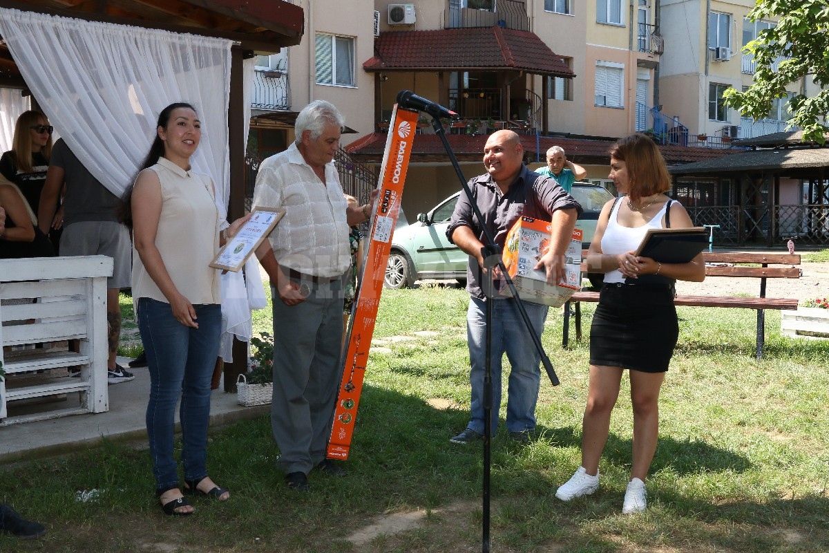 За обявяване на победителите бе избрана датата 29 юни – Ден на река Дунав. На специално събитие кметът на Общината д-р Цветан Ценков, заместник-кметът по устройство на територията и развитие на инфраструктурата Светослав Скорчев и председателят на Сдружението Радослав Георгиев поздравиха десетките граждани и жители на населени места, включили се в надпреварата. Награждаването се състоя в зеленото пространство пред бл. 58А на бул. „Панония“. Хората, живеещи в този вход на кооперацията, спечелиха първото място в категория „Квартали на град Видин“. Биляна Вилхемова благодари от името на всички за отличието. На второ и трето място се подредиха Димитър Тодоров (ул. „Баба Вида“ №13) и Петя и Николай Николови (ул. „Търговска“ №4). Грамотите бяха връчени от видинският кмет. „Похвално е, че жителите на град Видин и населените места откликнаха на инициативата да се грижат и преобразят местата около родните си домове“ – заяви той и допълни, че с активното си участие те подкрепят Общината в поддържането на зелените площи, тъй като тази дейност вече е нейна. Д-р Ценков каза, че е закупена нова техника, предстои реорганизиране изцяло на дейностите по чистота, озеленяване и строително-ремонтни работи. Кметът поздрави всички с Деня на река Дунав и честити на имениците, които празнуват на Петровден.
