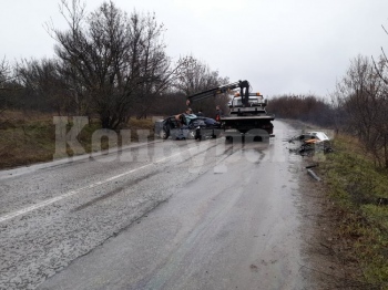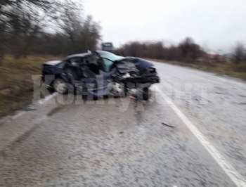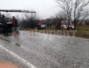 Млада шофьорка с "Фолксваген" е навлязла в платното за насрещно движение и се е забила в друга кола, в която са пътували възрастни мъж и жена.