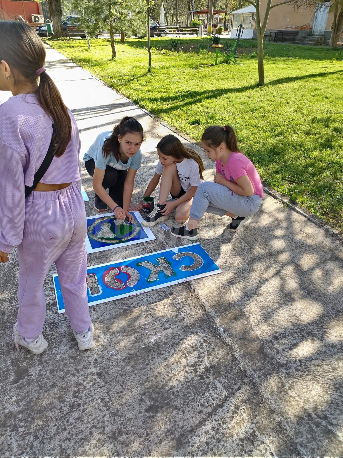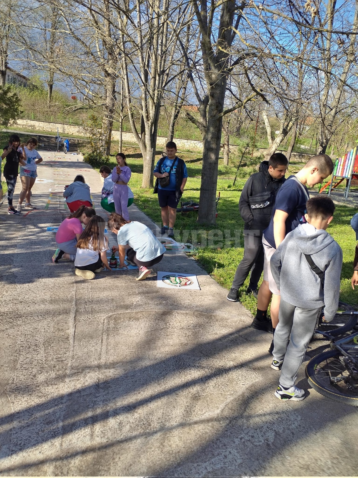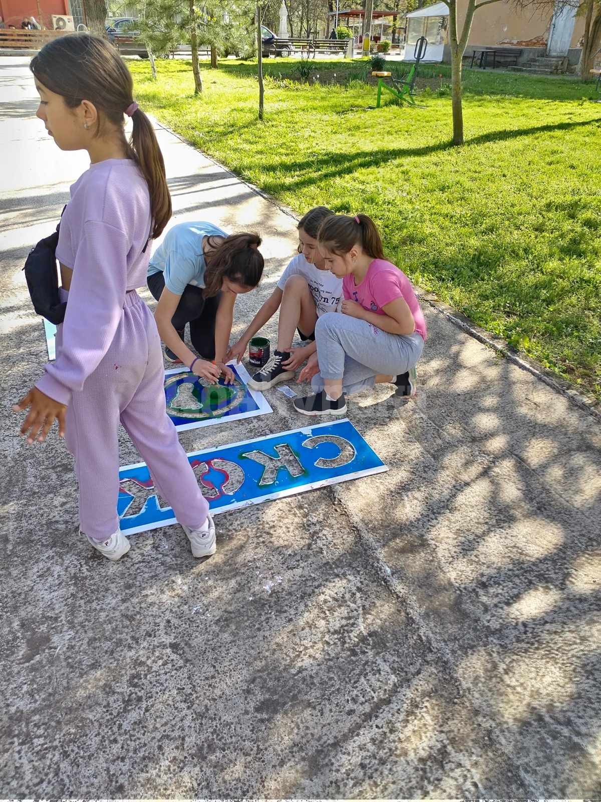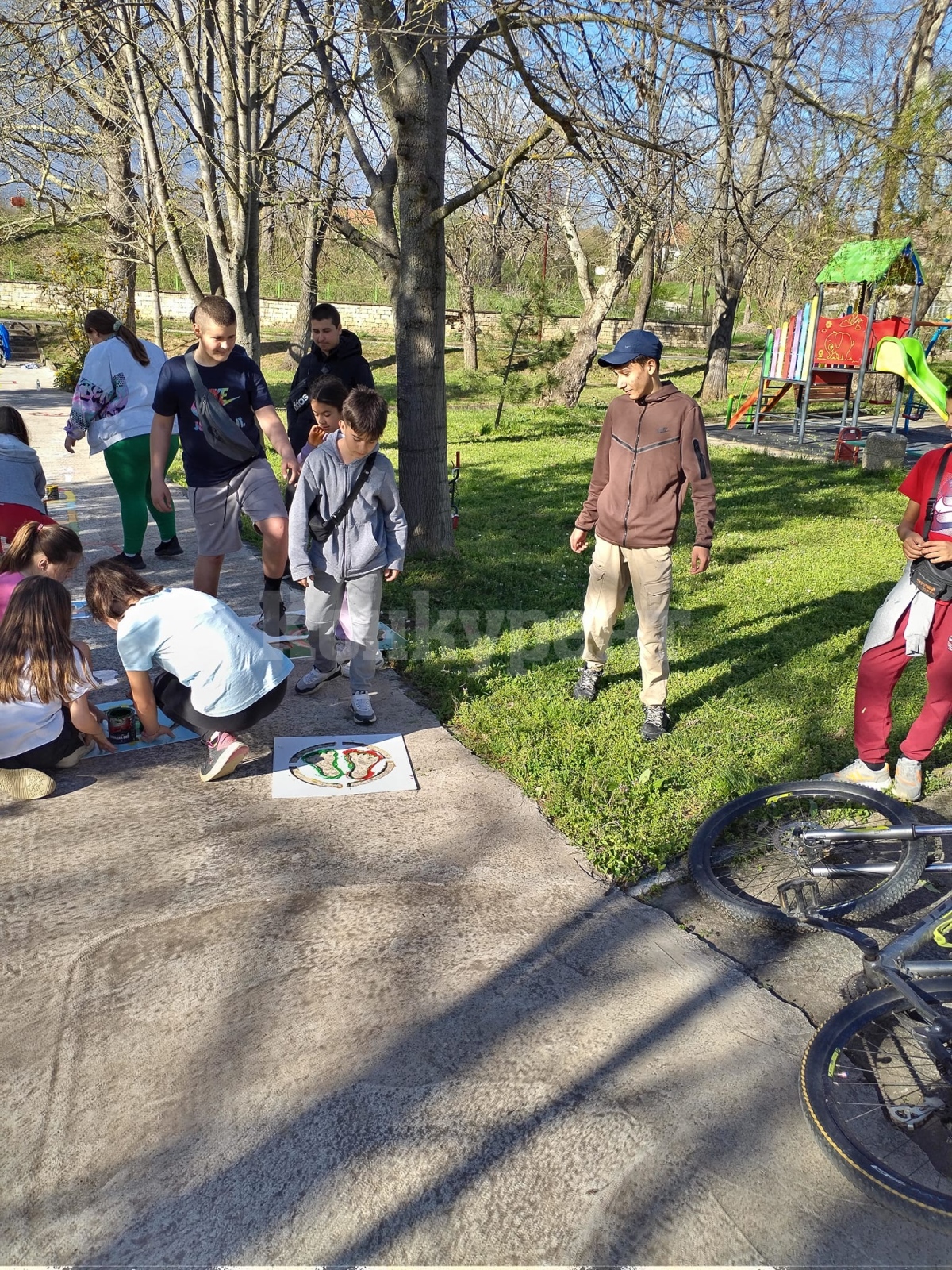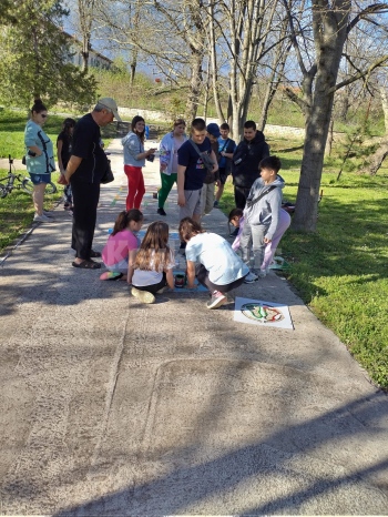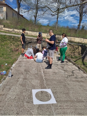 Деца от село Горно Пещене се включиха с голям ентусиазъм в изработването на "Алея на игрите".