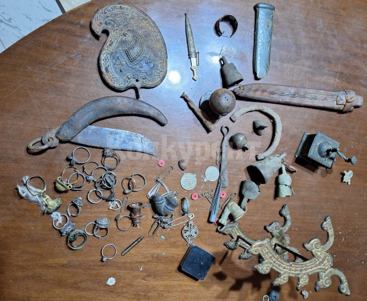 296 предмета - пръстени, монети, обеци, фибули, статуетки, пафти и множество други патинирани предмети с неправилна форма с белези на културно исторически ценности са иззети от дома на 51-годишен мъж в село Говежда, съобщават от полицията. В имота са открити и гладкоцевно оръжие със заличени номера, 16 калибър, 39 патрона от същия калибър и 2 патрона за нарезно оръжие с неизвестен калибър и марка.