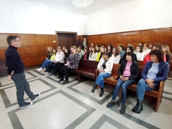 В Районен съд – Враца се проведе еднодневно обучение за магистрати и съдебни служители, организирано съвместно от съда и Националния институт на правосъдието. Темата на семинара бе „Управление на стреса. Техники за сплотяване на екипа и справяне със синдрома на професионалното прегряване“. Лектор бе Георги Кирилов, който е клиничен психолог и психотерапевт, преподавател в Софийския университет „Св. Климент Охридски“, в Медицинския университет – София и лектор към Националния институт на правосъдието. По време на лекциите и дискусиите към тях бяха разгледани темите за видовете стрес и стратегиите за справяне с него, за стреса в екипното взаимодействие и професионалната дейност в съдебната система, за бърнаута, както и стратегиите за намаляване на нивата на преживения стрес, бяха проведени тренинги. Лекциите бяха обогатени и подкрепени с примери, включително от работата в съдебната система, от която лекторът има преки наблюдения, като вещо лице по дела. В обучението взеха участие съдии и съдебни служители от всички районни съдилища от врачанския съдебен окръг в градовете Враца, Мездра, Бяла Слатина, Оряхово и Козлодуй, и от Окръжен съд – Враца. В края на обучението заместник председателят на Районен съд – Враца съдия Искра Касабова благодари на лектора Георги Кирилов за изчерпателната, интересна и полезна информация.