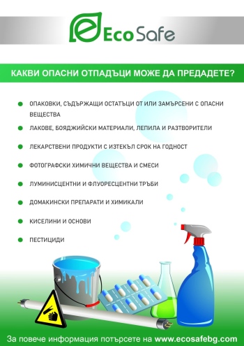 От „ЕкоСейф“ ООД напомня, че предаваните на пункта опасни отпадъци трябва да са с ясен състав с цел правилното им обезопасяване при транспортиране, последващо третиране и обезвреждане.