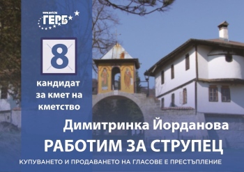 Кандидатът на ГЕРБ Димитринка Йорданова е човек със завиден опит, увереност и ясни ангажименти. Като кмет и секретар на кметството, тя вече е показала, че може да работи с постоянство, воля и уважение. Своята категорична подкрепа за кандидата на най-голямата политическа партия изразиха също народните представители Красен Кръстев и Мартин Харизанов. Днес, заедно с Димитринка Йорданова проведоха среща с жителите и споделиха техните очаквания за развитието на селото. Основен акцент беше поставен върху инфраструктурата, достъпа до социални и обществени услуги и възвръщането на традициите в селото. „Нашият приоритет е да продължим напред – да работим за Струпец, да вярваме в хората и да залагаме на бъдещето", заяви областният координатор на ГЕРБ Красен Кръстев.