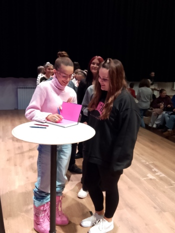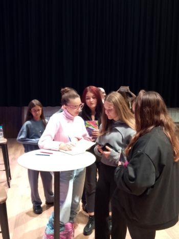 Учениците имаха възможност да задават въпроси, да получат автографи и да се снимат с любимата си авторка.