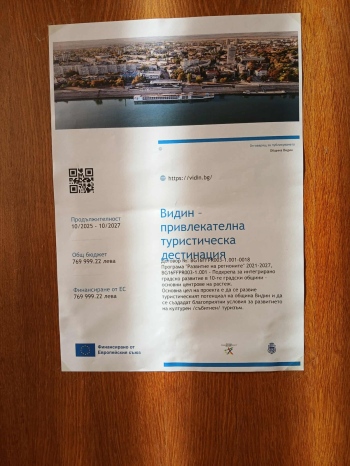 На пресконференция в залата на Общинския съвет във Видин заместник-кметът по хуманитарни дейности и социална политика Борислава Борисова представи проект „Видин – привлекателна туристическа дестинация“ на стойност 769 999, 22 лв. Срокът му на изпълнение е 24 месеца, като началото е поставено на 02.10.2025 г., а датата на приключване е 02.10.2027 г.