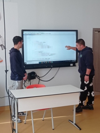 Като част от програмата от #CodeWeek, гост на СУ „Никола Войводов“ беше Христо Цеков – програмист с дългогодишен опит в сферата на софтуерното разработване, който обясни разликата между бекенд и фронтенд програмирането и даде примери от реалната практика, като по този начин насърчи учениците да развиват логическото си мислене, постоянството и любопитството си към новите технологии.