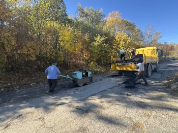 От днес започна и изкърпването на пътя до Нов гробищен парк, където се монтирано и улично осветление.