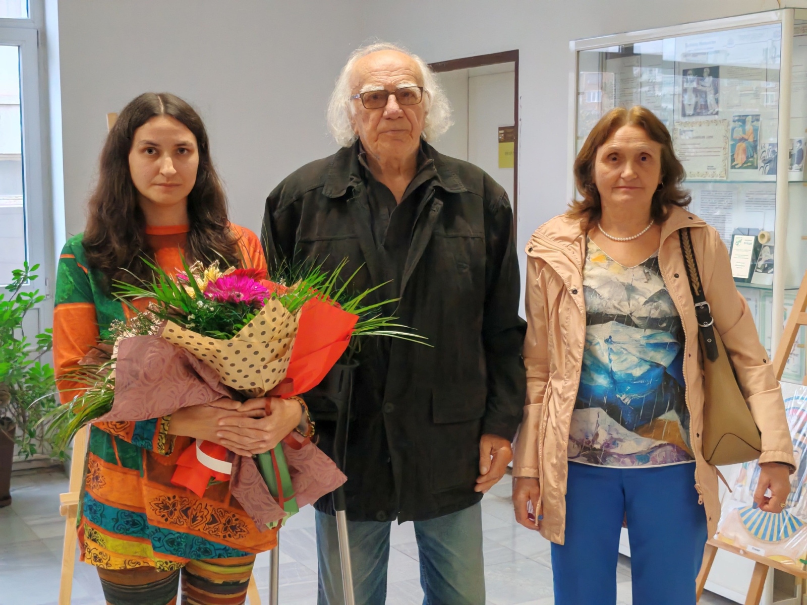 От името на Община Мездра Елена Нанова, директор на Дирекция „Социални дейности, образование и здравеопазване, култура, спорт и туризъм“, поздрави младата авторка с изложбата и й подари букет цветя. "Искам да Ви честитя откриването на изложбата, каза Елена Нанова. В този мрачен ноемврийски ден Вие озарихте нашето фоайе с много цвят, пъстрота и красота. Желая Ви здраве и нови творчески успехи!"