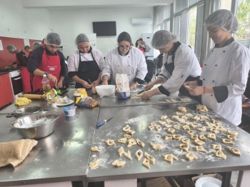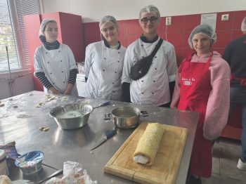 По време на специален час по УП „Кулинарни техники и технологии в кетъринга“ с преподавател инж. Цветелина Ангелова, участниците в мобилността представиха пред учениците от 9. б и 11. б класове - специалност „Кетъринг“ за наученото в Литва. Те демонстрираха приготвянето на двете традиционни рецепти, споделиха интересни факти за литовската кухня и обсъдиха значението на етичния подход към храната – от произхода на продуктите до тяхното сервиране.