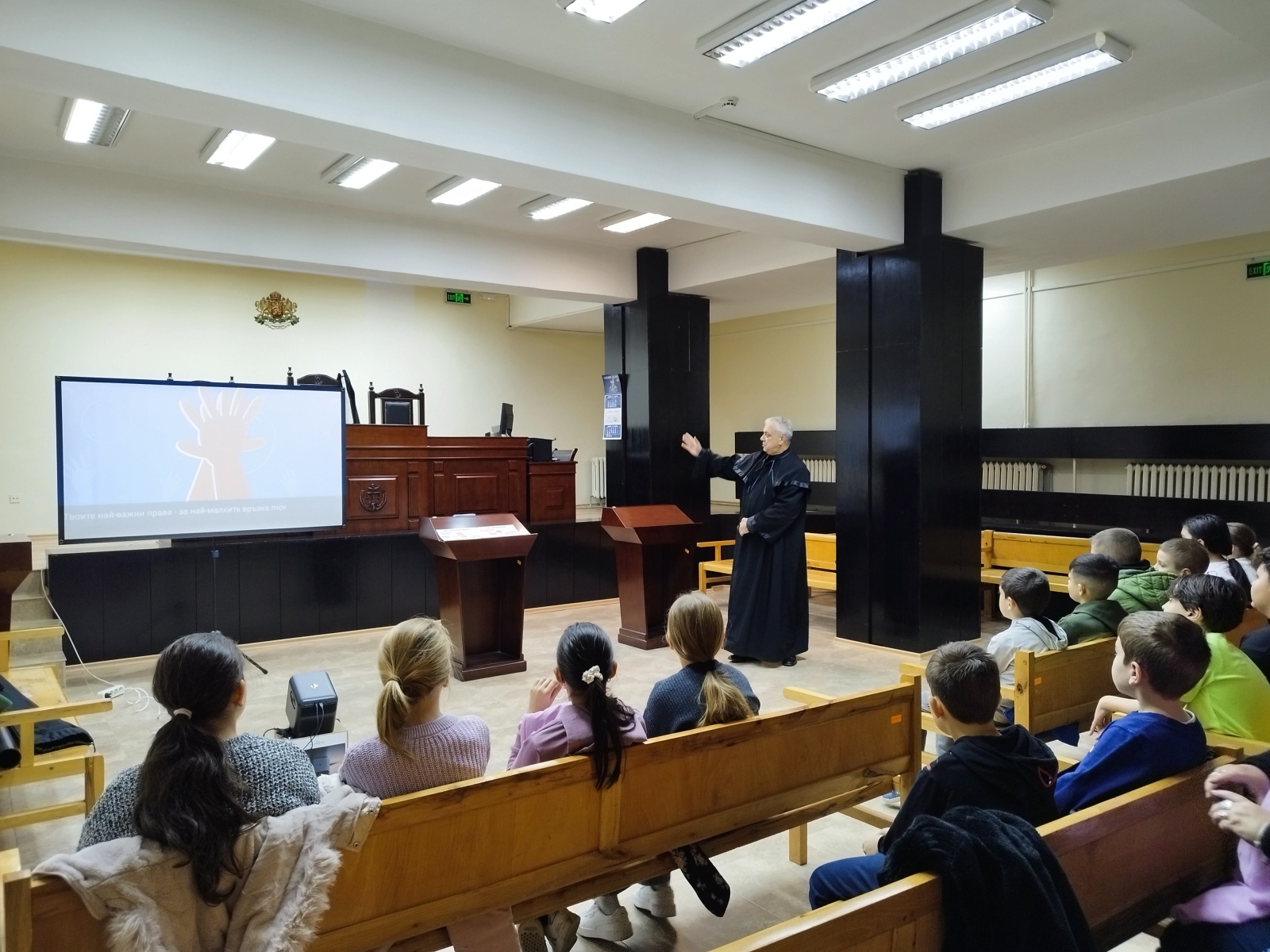 Магистратът представи по достъпен и подходящ за възрастта на учениците начин основните аспекти от работата на съдията, разликите между отделните съдилища и ролите на участниците в съдебния процес. Макар и малки, учениците показаха изключителна заинтересованост и буден ум. Любознайковците задаваха много въпроси и проявиха силен интерес към темата.