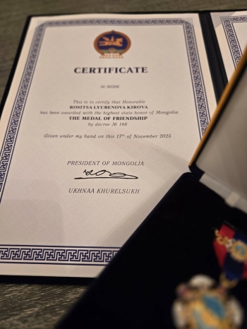 Народният представител Росица Кирова е удостоена с най-високото отличие, което се присъжда с указ на Президента на Монголия на чуждестранни граждани.
