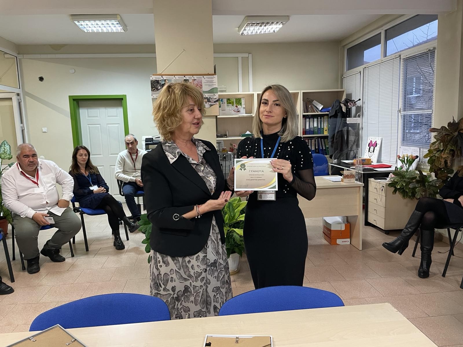 Дирекция „Бюро по труда“ – Враца избра своя Служител на годината 2025 – това е Десислава Стоянова, главен експерт, отдел „РППФД“.Служителката бе наградена за своя професионализъм, лична и професионална отговорност, социална активност за работата на дирекцията като екип.