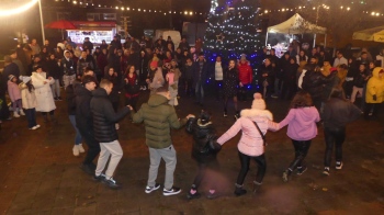 Всички отброиха заедно на глас последните десет секунди, преди да бъдат запалени светлините на 7-метровото коледно дърво.