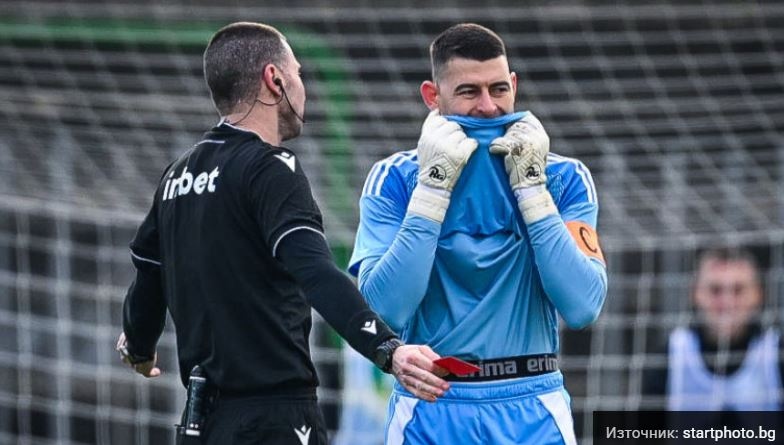 Три минути след това Владислав Найденов излезе очи в очи с Аргилашки, който напусна наказателното поле, за да го пресрещне, но топката рещна ръката му, което доведе до червен картон за вратаря на Добруджа.
