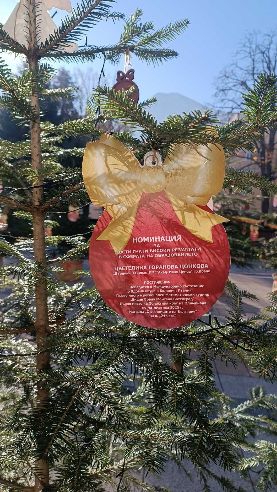 След края на празничните дни елхите ще бъдат засадени в паркова зона на Враца, като траен знак на признание към младите хора, които с труд и талант развиват интелектуалния потенциал на региона.