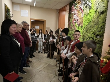 Коледари посетиха Община Козлодуй. Те бяха посрещнати от кмета на община Козлодуй Маринела Николова, заместник-кметовете Зорница Симеонова, Гълъбин Младенов, Ивалина Банова, секретаря на общината Анита Оприцова, както и служители от общинската администрация.