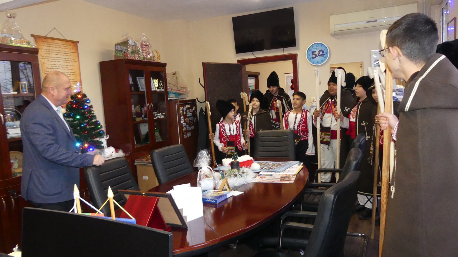 За тях малките коледари изпълниха песни и наричания за здраве и берекет, а общинското ръководство ги поздрави и им връчи традиционни дарове.