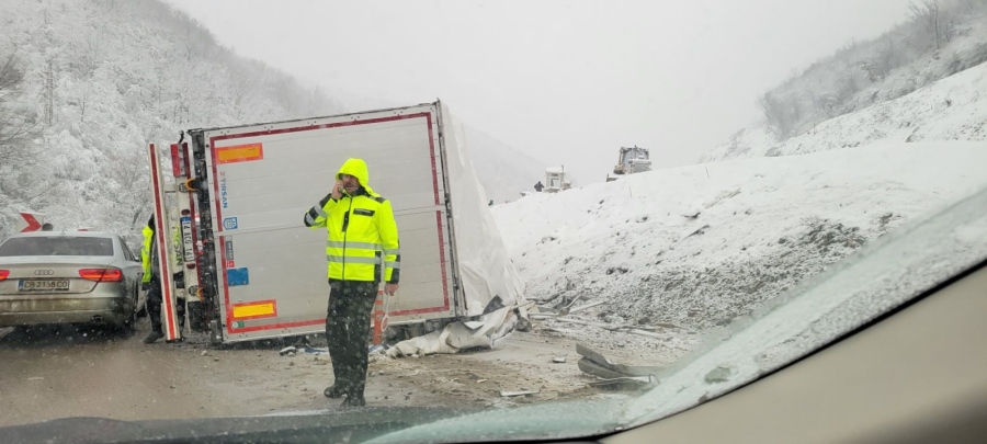 "Пътя между Ботевград-Мездра, посока Мездра, на Лютидол. Обърнат настрани турски камион. Чупеха предното стъкло да извадят човека.", споделиха в социалните мрежи пътуващи в района.