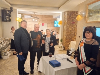 Всяка от празнуващите двойки получи от кмета г-н Петков пълна кошница с подаръци.