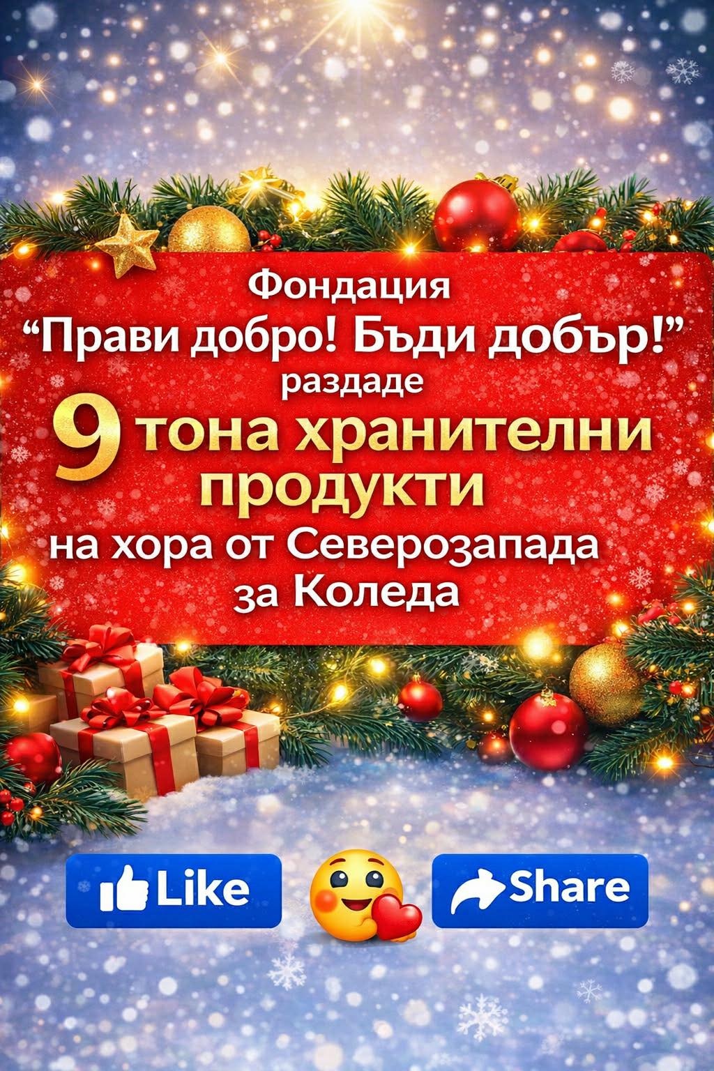 Фондация „Прави добро! Бъди добър“ раздаде 9 тона хранителни продукти на хора от Северозапада за Коледните празници.