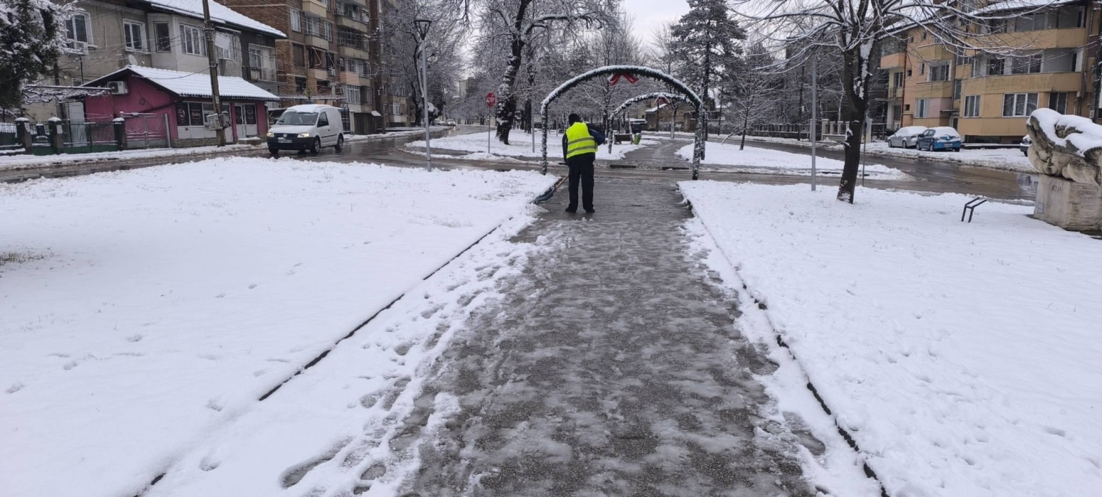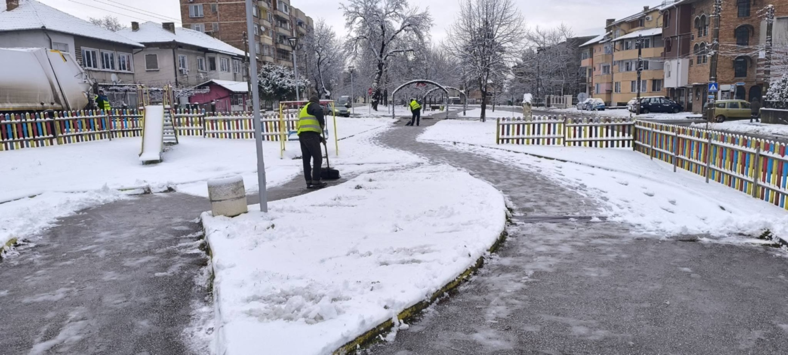 Зимната обстановка в община Мездра постепенно се нормализира след падналия в ранните утринни часове снеговалеж.