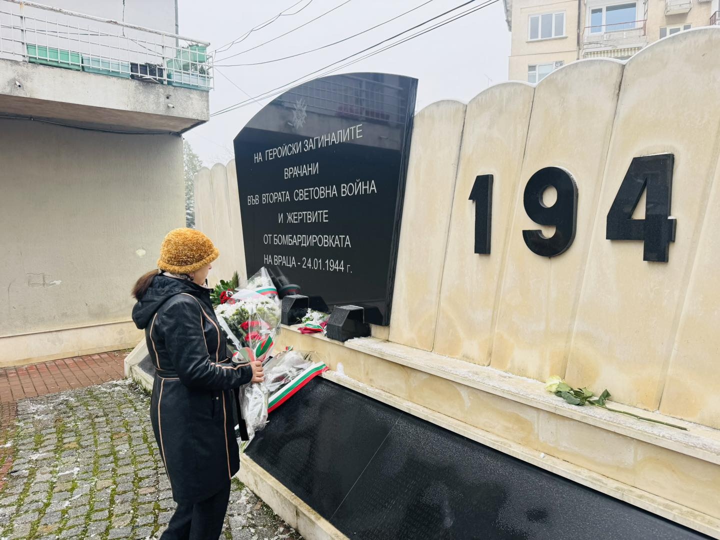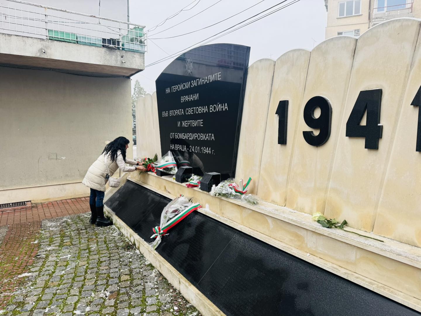 След края на ритуала бяха поднесени цветя пред Мемориала на загиналите врачани във Втората световна война и жертвите от въздушните бомбардировки над Враца – знак на признателност и преклонение пред паметта им.