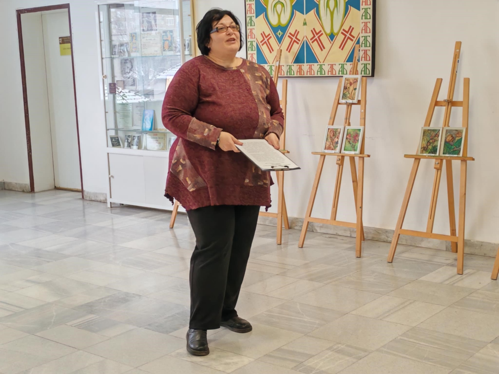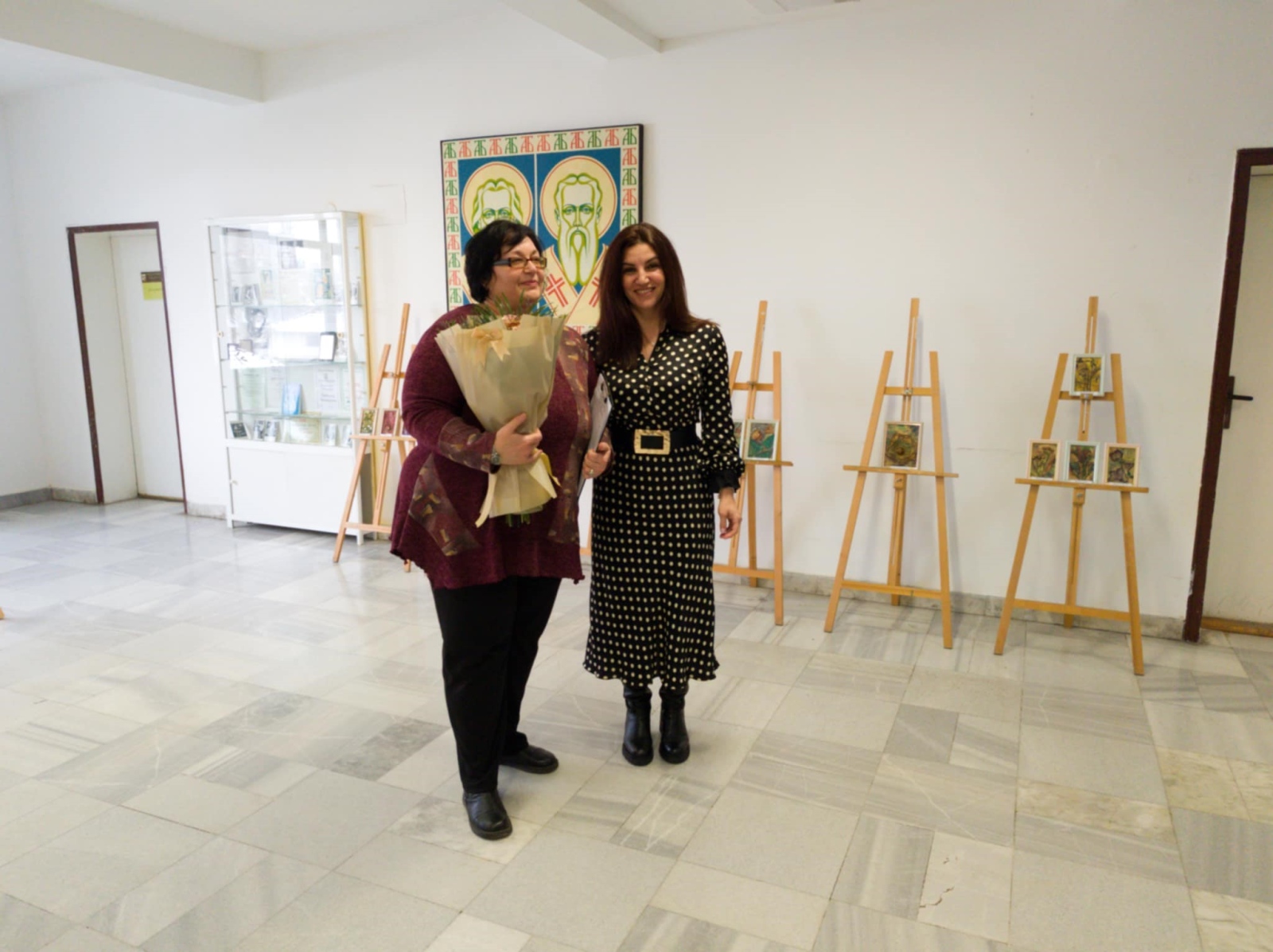 От името на Община Мездра заместник-кметът Нели Минева поздрави художничката с изложбата и й подари букет цветя.