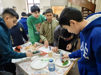 В събитието се включиха учениците от 5А клас с ръководител Вероника Иванова, част от тях, участници в кръжок „Екотворителница“ към ЦПЛР-ОДК „Л. Живкова. След интересната презентация децата имаха възможност да се потопят в ролята на малки творци и да приложат наученото на практика, като изработиха свои цветни творби, вдъхновени от римското изкуство.