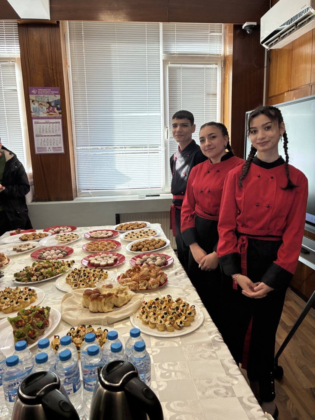 Гостите се насладиха и на различните вкусотии, приготвени от учителите и учениците от професия „Готвач“. Вярваме, че за тях ще остане незабравимо и гостуването им в Бърдарски геран, където станаха част от пъстрия и емоционално наситен празник „Фършанги“ на банатските българи. Те посетиха Етнографския музей в селото, дейставащата църква и Немската църква, която на този етап е със статут на музей.