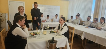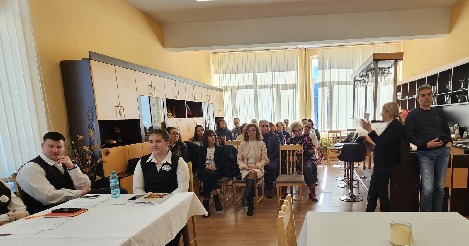 В духа на съвременното професионално образование, на 18.02.2026г., в ПГ по търговия и ресторантьорство – гр. Враца, се проведе иновативен интегриран урок на тема „Сервиране на студени предястия“/ Serving Cold Appetizers с ученици от иновативна паралелка по предметите „Чужд език по професията – Английски език“ и „Организация на обслужването в ресторанта“. Урокът беше част от плана на МРЕЖА ЗА МЕЖДУИНСТИТУЦИОНАЛНА ПОДКРЕПА И СЪТРУДНИЧЕСТВО на тема: «ВЪЗМОЖНОСТИ НА ПРОЕКТНАТА ДЕЙНОСТ ЗА УСЪВЪРШЕНСТВАНЕ НА УЧИЛИЩНАТА СРЕДА И ОБЩНОСТ. ПРОФЕСИОНАЛНИ УМЕНИЯ И ВРЪЗКА С ЖИВОТА.»