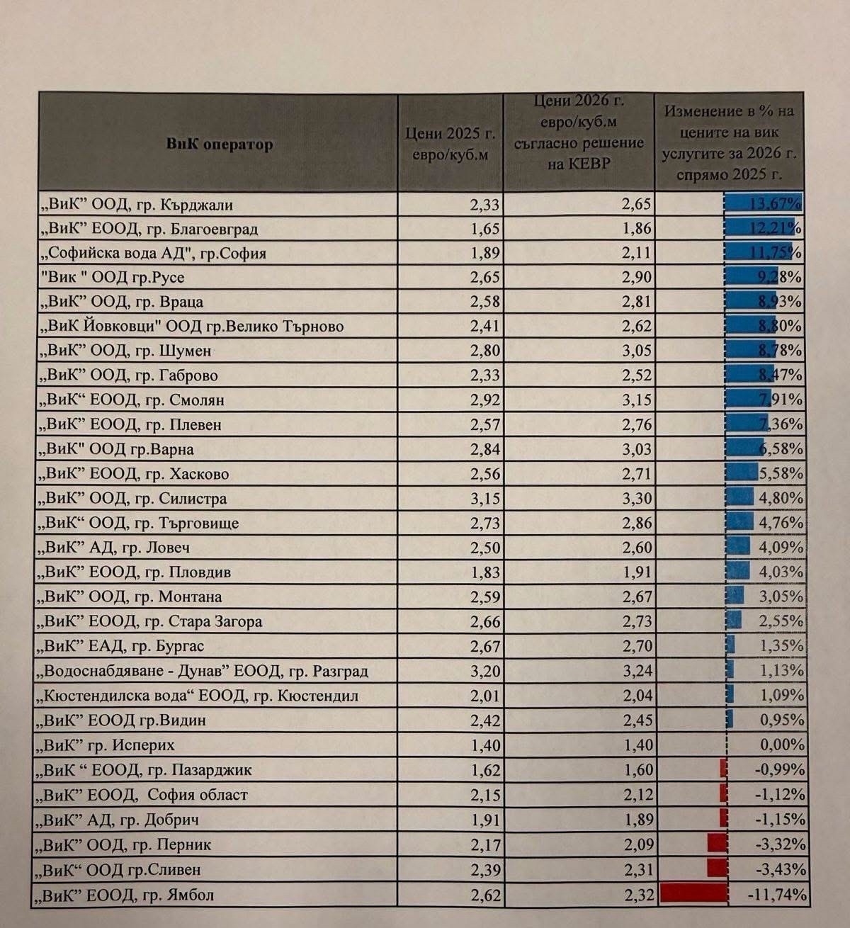 „Това решение натоварва пряко хората в регион, който години наред се сблъсква с проблеми във водоснабдяването. Повишението идва без ясни гаранции за подобряване на качеството на услугата и без реални резултати, които гражданите да усещат“, заяви Харизанов.