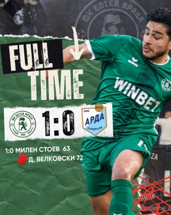 "Ботев" (Враца) победи с 1:0 "Арда" в двубой от 25-ия кръг на efbet Лига.