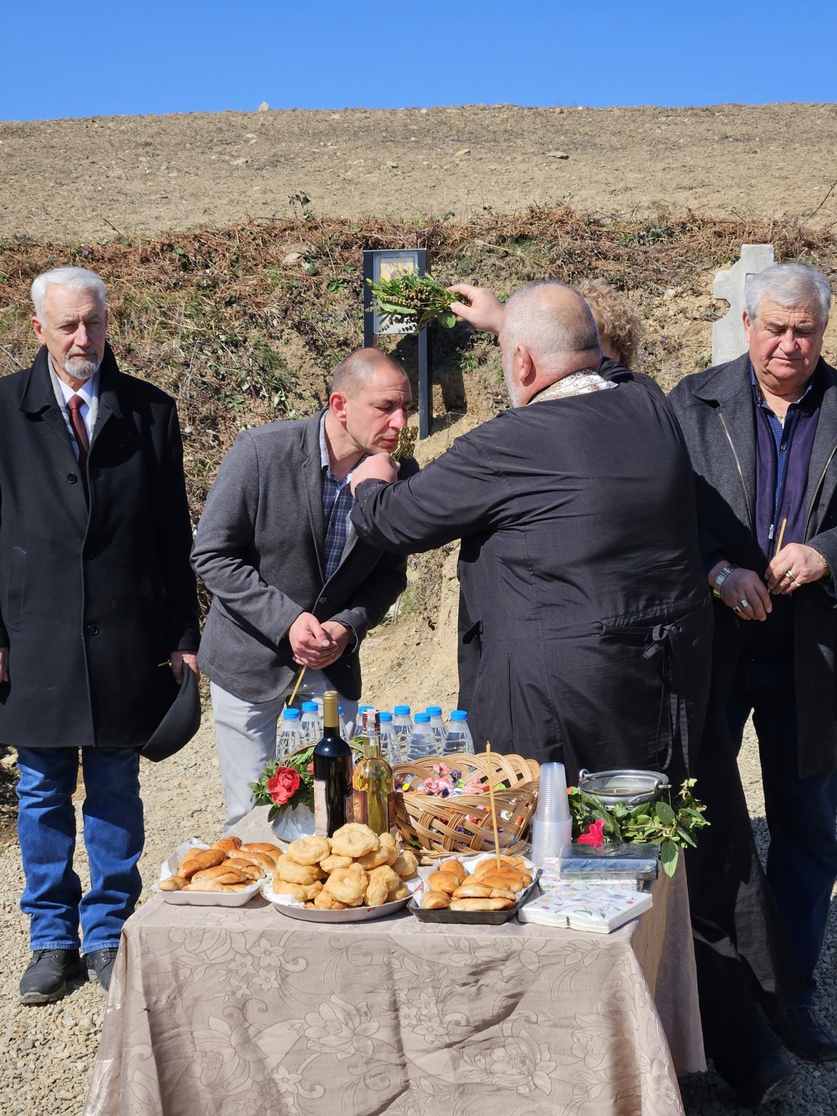 Отец Захарий прочете Светото евангелие и отслужи водосвет за здраве и благоденствие. Всеки присъстващ имаше възможност да се докосне до светената вода.