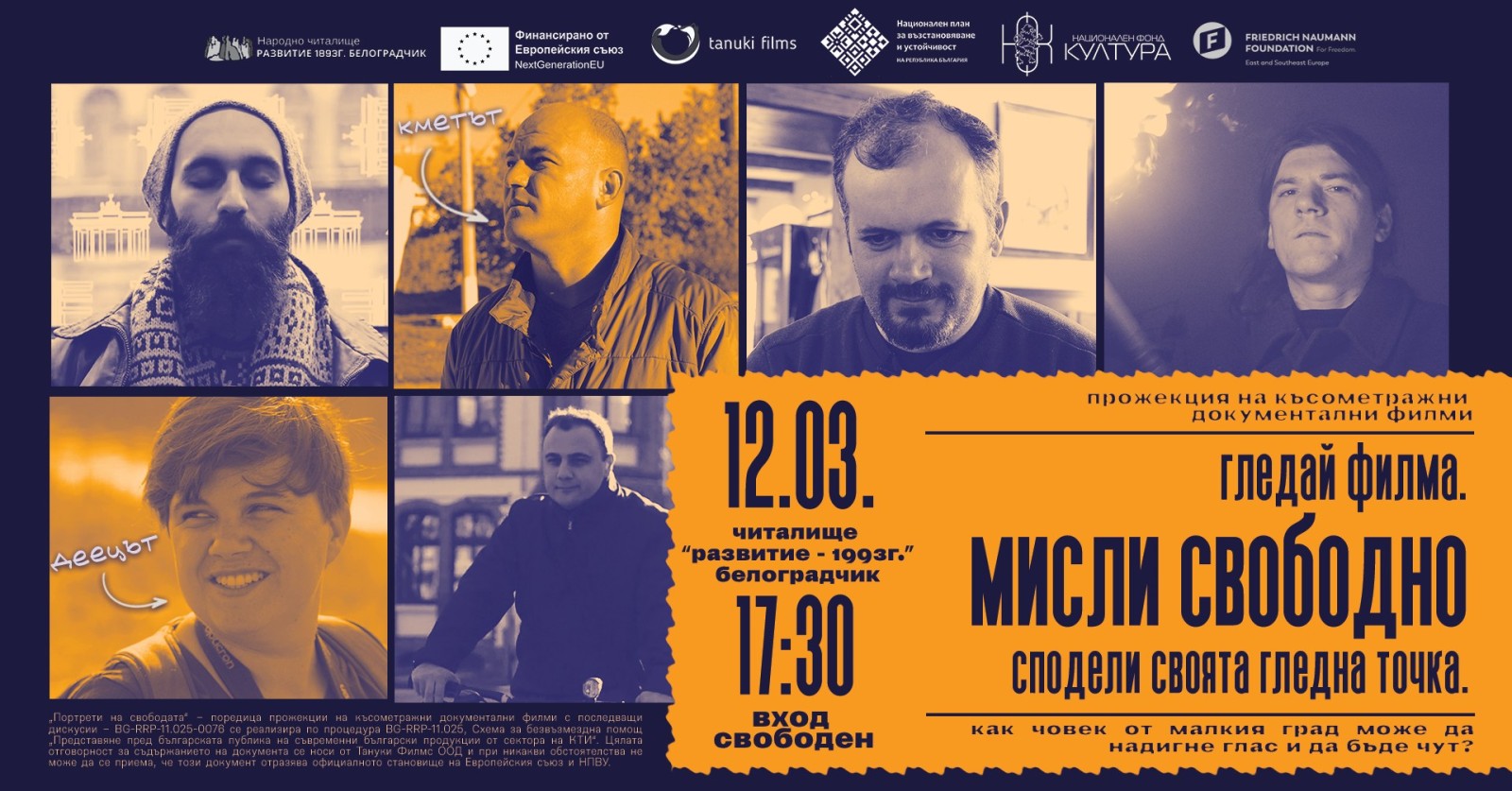 В НЧ „Развитие – 1893 г.“ Белоградчик се проведе прожекция на три късометражни документални филма от поредицата „Мисли свободно“. Събитието събра хора, които вярват, че свободата на словото и активната гражданска позиция са важни не само в големите градове, но и в малките общности. Чрез историите на един украински кмет и на адвокат, филмите поставят въпроси за справедливостта, отговорността и смелостта да отстояваш принципите си.