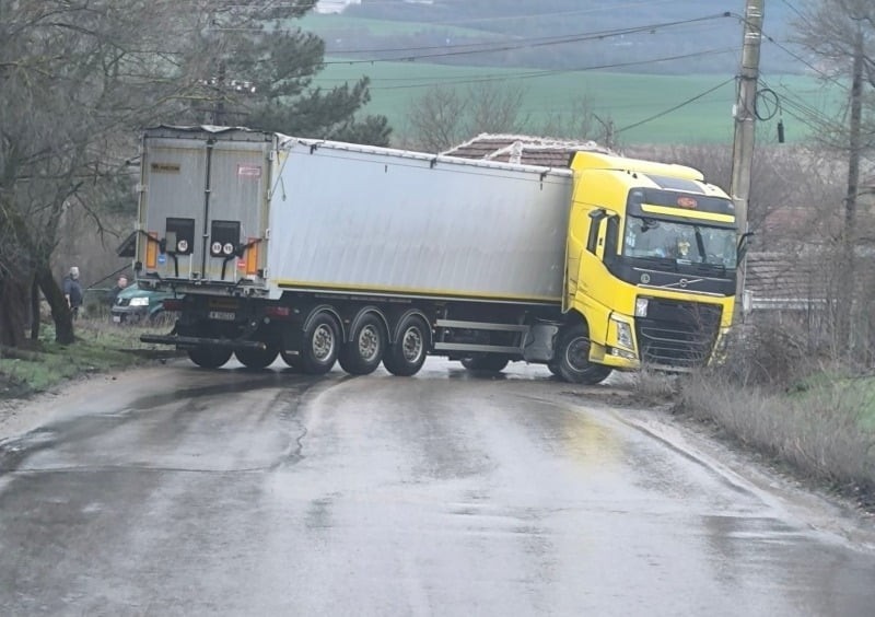Данни за пострадали няма, но пътят остава затворен до преместването на тежкото возило.