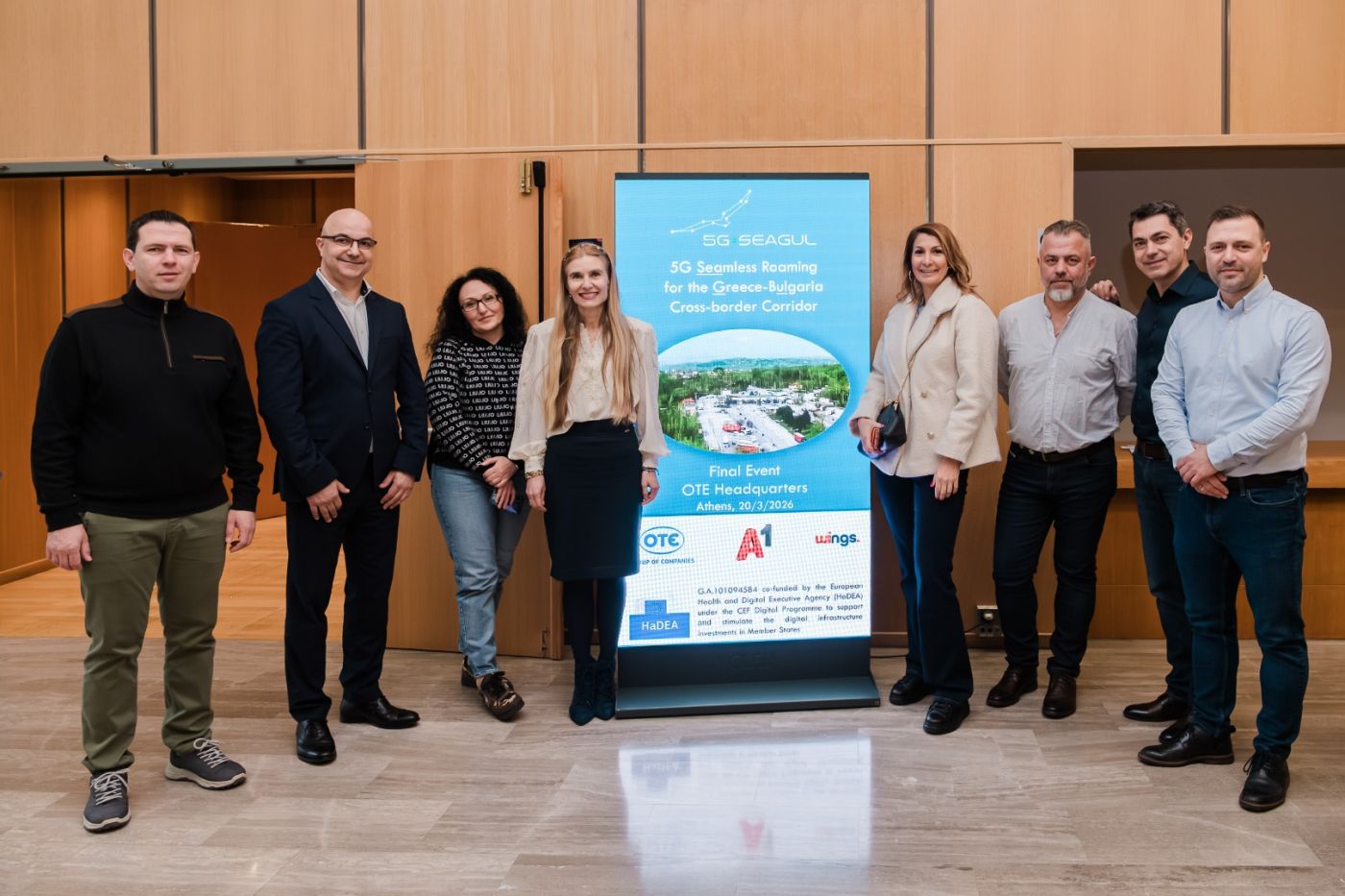 В заключителното събитие на проекта от българска страна участваха Георги Коджаиванов, директор „Конвергентна мрежа и услуги“ и Христина Бурдашева, старши директор „Правна и регулаторна политика“ в А1, и Златина Николова, директор „Дигитална свързаност“, Министерство на транспорта и съобщенията. Заедно с представители на партньорските организации WINGS и COSMOTE, те обобщиха резултатите от съфинансирания от EС проект 5G SEAGUL в присъствието на Танос Каскаманидис, съветник по проекта 5G SEAGUL, HaDEA – CEF Digital.