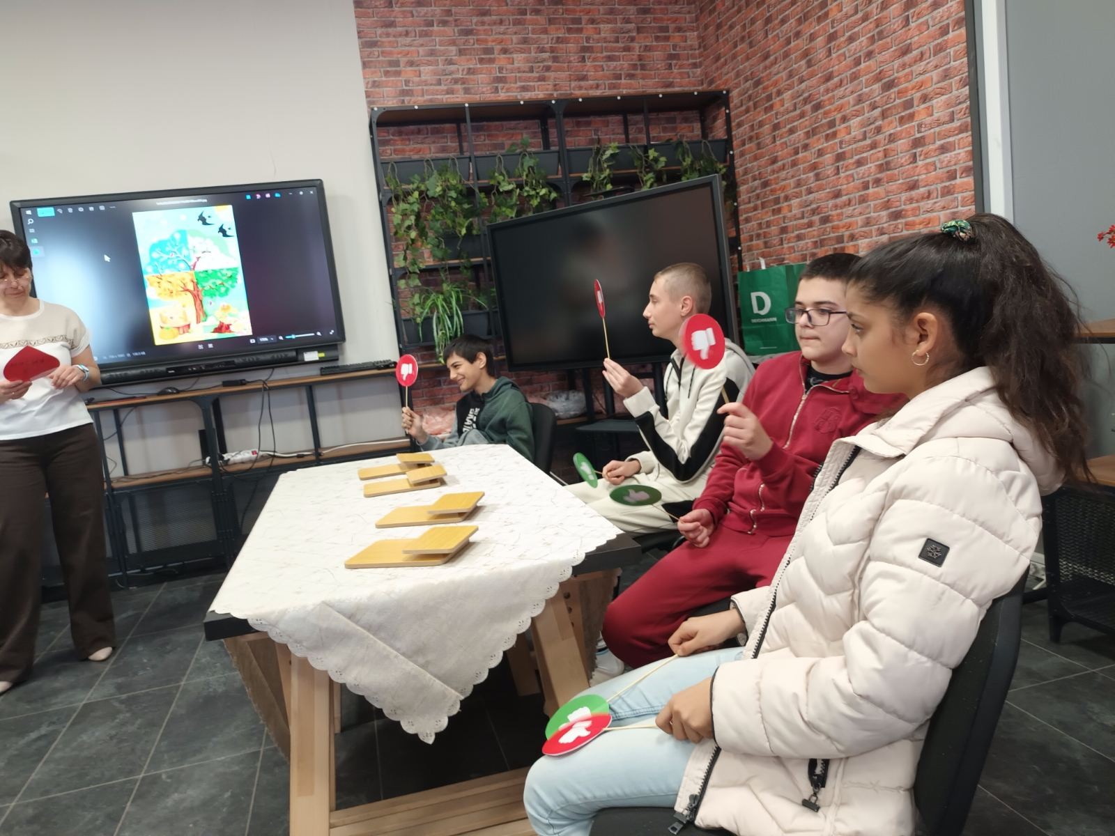 В заниманието участваха ученици с различно ниво на езиково развитие, които чрез интерактивни дейности, образователни игри и практически упражнения имаха възможност да обогатят своя речник и комуникативни умения. Те съставяха изречения, разпознаваха звукове, свързваха думи с изображения и упражняваха писане с помощта на графичен таблет.