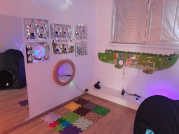 Официалните гости се включиха в прерязването на лентата и след това разгледаха новата придобивка. Сензорната стая представлява специално оборудвано затъмнено помещение, което чрез светлини, звуци, цветове и различни тактилни елементи подпомага децата да се успокоят, концентрират и развиват своите сетива. Използват се разнообразни уреди и аксесоари, като всички дейности са под формата на игра. Участвайки в нея, детето не се концентрира върху крайния резултат, а върху самото преживяване, получава възможност самостоятелно да открива и изследва. Стаята е особено полезна за деца със специални образователни потребности, но помага и на всички ученици за преодоляване на затруднения, за развиване на чувство за самооценка, придобиване на усещане за контрол и справяне с различни предизвикателства.