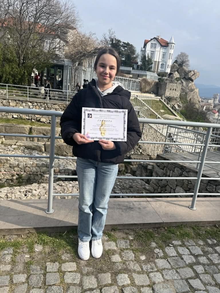 Моника Георгиева (VI „а“) клас спечели второ място в своята възрастова група, доказвайки своя талант и упорит труд.