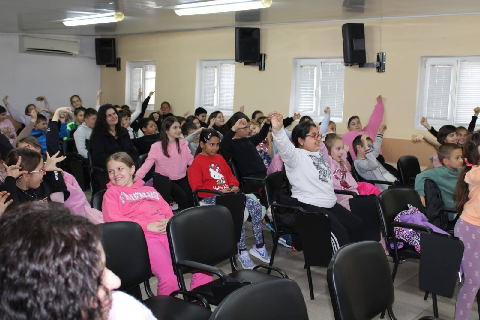 Срещата беше изпълнена с много усмивки и активно участие. Учениците се включиха в забавни игри, като имитираха животни и произнасяха скоропоговорки.