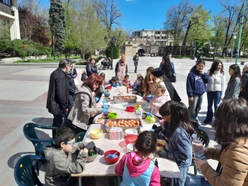 В навечерието на един от най-светлите християнски празници – Възкресение Христово, днес на пл. „Бдинци“ бяха боядисани 600 яйца в различни цветове. В инициативата се включиха малчугани от детски градини и ученици от видински училища заедно с техните родители и служители на отдел "Хуманитарни дейности" в Община Видин.