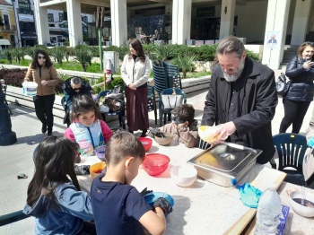 За всяко дете имаше специална картичка за изработка на великденско яйце, както и лакомство.