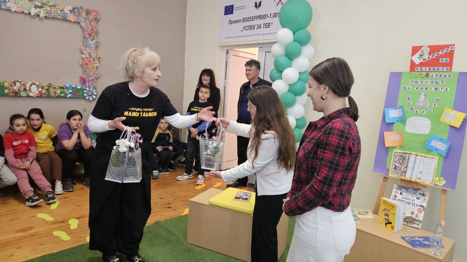 Мелис Скендерова и Вероника Шомаклийска пренесоха учениците в света на любимите детски герои, като прочетоха откъси от „Пипи Дългото чорапче“ и „Карлсон, който живее на покрива“ от Астрид Линдгрен. С артистично присъствие те създадоха вдъхновяваща атмосфера и задържаха вниманието на децата до самия край.