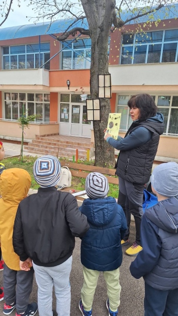 От експертите в Дирекция на Природен парк "Врачански Балкан" децата научиха какви следи оставят животните в гората и как да ги разпознават. С помощта на лупа и определител те откриха всички горски следи в двора на детската градина.